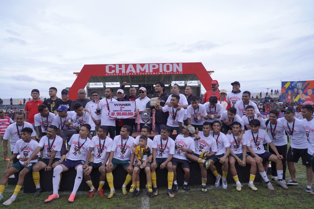 Tim Sepak Bola A.S Rumania berhasil cetak sejarah baru dengan berhasil menjuarai ajang sepak bola Gurabati Open Turnamen ke 27 Tahun 2025, setelah mengalahkan Tim Perasaan (TMPR) dari Kota Ternate dengan skor akhir 1-0 pada laga final Gurabati Open Turnamen, yang berlangsung di Stadion Gurabati, Minggu (18/5/2025). Wali Kota Tidore Kepulauan Muhammad Sinen saat menutup dengan resmi Gurabati Open Turnamen menyampaikan terima kasih kepada panitia pelaksana, para wasit, pelatih dan manajer, seluruh warga masyarakat Gurabati dan sekitarnya serta pihak terkait lainnya, yang telah mendukung kegiatan ini hingga berlangsung dengan sukses. “Terima kasih kami ucapkan kepada semua tim yang terlibat dan telah ikut menyuguhkan permainan terbaiknya, baik yang meraih predikat juara maupun yang belum berhasil lolos ke partai final. kepada tim yang keluar sebagai juara, saya ucapkan selamat atas prestasi yang saudara-saudara raih, pertahankan dan tingkatkan terus prestasi ini di masa-masa datang,” Ucapnya. Orang nomor satu di Kota Tidore Kepulauan ini juga mengajak seluruh warga masyarakat Kota Tidore Kepulauan, untuk terus kembangkan berbagai kegiatan olahraga, termasuk olahraga prestasi, olahraga pendidikan maupun olahraga rekreasi, serta jadikan olahraga sebagai gaya hidup manusia Indonesia modern, karena olahraga menyehatkan badan serta membentuk karakter. “Akhir dari sebuah pertandingan, tidak sekadar meraih kemenangan semata, tetapi lebih penting sebagai ajang mempererat tali silaturahmi, memupuk rasa kebersamaan dan saling menghargai antara sesama. Untuk itu sikap saling memaafkan dalam menyelesaikan setiap permasalahan yang terjadi jauh lebih terhormat dibandingkan harus menyimpan dendam,” Pesannya. Sementara ketua panitia Gurabati Open Turnamen, Hajar Hasan dalam laporannya mengatakan, 2 tim yang berhasil mencapai puncak grand final ideal yaitu As Rumania dari Kota Tidore Kepulauan VS TMPR dari Kota Ternate. Dan yang berhasil keluar sebagai conqueror / sang penakluk GOT 27 Tahun 2025 adalah A.S Rumania. “Para juara mendapat piala tetap, medali emas dan bonus sebesar Rp. 150.000.000. Terbaik Kedua TMPR berhak mendapat piala tetap, medali Perak dan bonus sebesar Rp. 100.000.000, sementara Juara III bersama Rajawali Simau Galela dan Bombastic Fc Kota Ternate berhak mendapat piala tetap dan bonus masing-masing sebesar Rp. 50.000.000.” Ungkapnya. Hajar menambahkan, sementara pemain terbaik atau Best Player diraih oleh Hamzah Lestaluhu (17) dari TMPR Fc dan Top Score diraih oleh Atcha Abdou Rafiou (22) dari Tim Gebe Spartan. Panitia juga memberikan bonus kepada pemain terbaik, top scorer dan tim favorit masing-masing sebesar Rp.5.000.000, untuk tim favorite sendiri diraih oleh A.S Rumania.