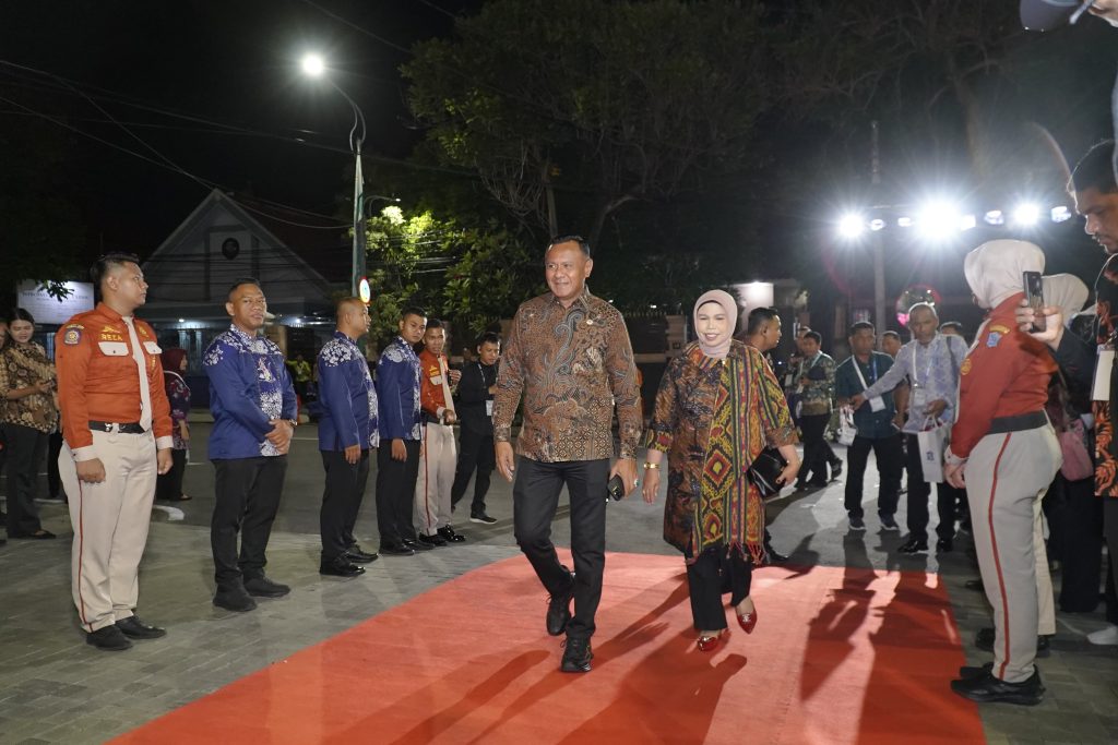 Wali Kota Tidore Kepulauan Muhammad Sinen bersama Ketua TP-PKK Hj. Rahmawati Muhammad Sinen menghadiri Gala Dinner Musyawarah Nasional (Munas) ke VII Asosiasi Pemerintah Kota Seluruh Indonesia (APEKSI) 2025 yang berlangsung di Halaman Taman Surya, Balai Kota Surabaya, Jawa Timur, Rabu (7/5/2025) malam. Kehadiran Wali Kota dan Ketua TP-PKK Kota Tidore Kepulauan disambut langsung oleh Wali Kota Surabaya Eri Cahyadi dan Ibu Rini Indriyani, kemudian dilanjutkan dengan prosesi tukar souvenir ciri khas daerah masing-masing secara bergantian dari Wali Kota Tidore Kepulauan bersama Ibu kepada Wali Kota Surabaya Eri Cahyadi dan Ibu. Acara gala dinner ini menjadi rangkaian kegiatan Munas VII APEKSI 2025, yang mempertemukan para kepala daerah dan pejabat tinggi dari berbagai kota di Indonesia. Kehadiran Wali Kota Tidore Kepulauan mewakili Pemerintah dalam forum strategis, yang bertujuan memperkuat sinergi antar pemerintah kota, serta menyampaikan aspirasi dan inovasi daerah. Meski dikemas dengan pengaturan protokoler yang sangat ketat, gala dinner ini berlangsung dengan aman, lancar dan meriah, dengan penampilan spesial dari sang diva Indonesia, Krisdayanti. Turut hadir mendampingi Wali Kota Tidore dalam acara ini, Asisten Sekda, Kepala Baperida Tidore, Kabag Pemerintahan dan Kabag Protokoler Tidore.