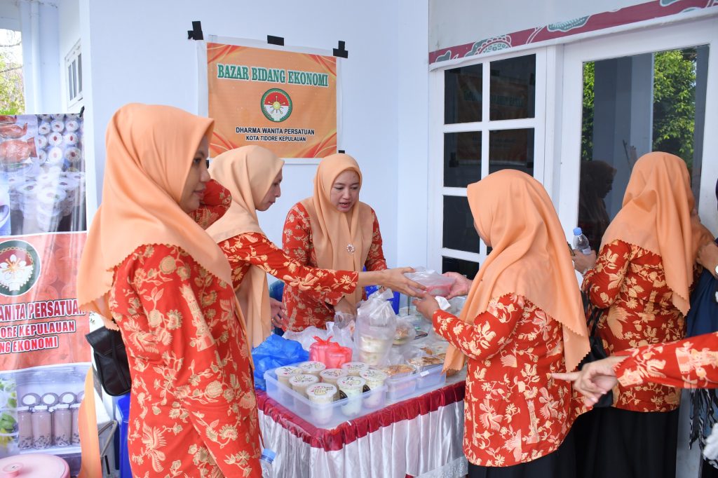 Dharma Wanita Persatuan (DWP) Kota Tidore Kepulauan melaksanakan Pertemuan rutin para anggota DWP Kota Tidore yang dirangkaikan dengan sosialisasi terkait dengan Pentingnya Pendidikan Anak Usia Dini (PAUD). Sosialisasi ini menghadirkan Pengawas Paud Kota Tidore Kepulauan yang juga selaku Ketua Himpunan PAUD Indonesia (Himpaudi) Kota Tidore Ida Abdal S.Pd. MM sebagai Narasumber. Pertemuan Rutin ini dihadiri oleh Wakil Ketua I DWP Kota Tidore Kepulauan Gamar Abdul hakim yang berlangsung di Gedung Dharma Wanita Kota Tidore, Kamis (7/5/2025). Pada kesempatan tersebut, Wakil Ketua I DWP Kota Tidore Kepulauan Gamar Abdul Hakim mengatakan, DWP Kota Tidore beserta pengurus dan seluruh anggota pada setiap bulan berjalan melaksanakan pertemuan rutin dengan pembahasan isu-isu yang terjadi di kehidupan masyarakat maupun organisasi DWP itu sendiri. “Pertemuan kita pada setiap bulan akan membahas berbagai isu yang berkembang di masyarakat maupun organisasi wanita yang ada di Kota Tidore atau bahkan perkembangan organisasi DWP itu sendiri.” Kata Gamar Gamar juga berharap semoga dengan pertemuan rutin para pengurus DWP setiap bulan berjalan ini dapat dimanfaatkan sebaik mungkin, sehingga tetap dapat berkolaborasi dengan pemerintah untuk memajukan Kota Tidore yang aman, ramah dan nyaman untuk semua. Selain pertemuan rutin dan sosialisasi, Bidang Ekonomi DWP Kota Tidore Kepulauan juga menyajikan berbagai macam menu dalam penjualan bazar setiap bulan berjalan ini merupakan hasil pembuatan para pengurus DWP Kota Tidore.