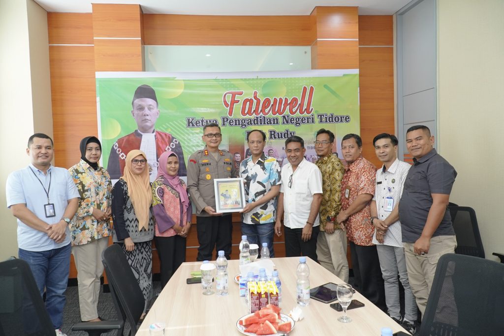 Wakil Wali Kota Tidore Kepulauan Ahmad Laiman menghadiri acara perpisahan (Farewell) Ketua Pengadilan Negeri Tidore Rudi Wibowo, yang berlangsung di Ruang Rapat Kantor Unit BRI Cabang Soasio, Jumat (2/5/2025). Pada kesempatan tersebut, Ahmad Laiman menyampaikan terima kasih dan apresiasi kepada Kepala Pengadilan Negeri Tidore yang mungkin selama ini telah melaksanakan tugas di Kota Tidore dengan sangat baik. “Saya mungkin belum terlalu lama bergabung dengan bapak/ibu forkopimda semua, namun selama menjadi anggota DPRD saya sangat mengenal sosok pak Rudi Wibowo namun sangat disayangkan sekali disaat saya bergabung menjadi bagian dari Forkopimda ini beliau harus keluar dari Tidore, namun semoga silaturahmi tetap terjaga dengan baik untuk kita semua.” Kata Ahmad Laiman Orang nomor dua di Kota Tidore kepulauan ini juga berharap agar silaturahmi tetap terjalin dengan baik dan mendapatkan kehangatan dan kesuksesan di tempat tugas yang baru. “Semoga silaturahmi kita semua bisa tetap terjalin dengan baik, meskipun sudah berpisah, kepada pak Rudi mudah-mudahan di tempat tugas yang baru mendapatkan kehangatan dan kesuksesan lebih dari yang bapak dapatkan di Kota Tidore.” tandas Ahmad Laiman Sementara, Kepala Pengadilan Negeri Tidore Rudi Wibowo juga menyampaikan terima kasih kepada Pemerintah Daerah serta Forkopimda atas kerjasama yang baik selama berada di Kota Tidore. “Saya sangat berterima kasih kepada Pemerintah Daerah baik itu bapak Wali Kota dan Wakil Wali Kota maupun para Forkopimda serta seluruh OPD yang ada di Kota Tidore karena selama menjalankan tugas di sini kalian semua adalah keluarga saya, sekali lagi terima kasih atas kerjasama yang baik selama saya menjadi Kepala Pengadilan Negeri Tidore.” kata Rudi “Saya dimutasikan ke Kota Malang, semoga silaturahmi ini tetap terjaga dengan baik, sehingga kedepan jika ada bapak ibu yang berkunjung ke Kota Malam bisa menghubungi saya sehingga kita bisa bersilaturahmi kembali.” Sambung Rudi