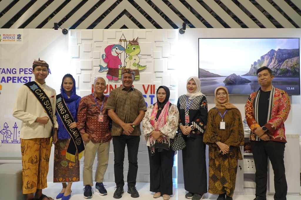 Tiba di Surabaya, rombongan Wali Kota Tidore Kepulauan disambut oleh Perwakilan Pejabat dari Pemerintah Kota Surabaya, di Bandara Internasional Juanda, Senin (5/5/2025). Penyambutan ditandai dengan menyematkan udeng atau blankon khas Jawa Timur kepada Wali Kota Tidore Kepulauan dan pengalungan kain batik kepada Ketua TP-PKK Kota Tidore Kepulauan. Dalam kesempatan tersebut, Wali Kota Tidore Kepulauan Muhammad Sinen menyampaikan terima kasih atas penyambutan yang telah dilakukan oleh Pemerintah Kota Surabaya. “Terima atas penyambutan ini, saya bersama Ketua TP-PKK dan rombongan yang terdiri dari beberapa pimpinan OPD, dan para pemuda delegasi Youth City Changers (YCC) 2025,” Tuturnya. Di kesempatan yang sama, Kepala Dinas Perindustrian dan Tenaga Kerja (Disperinaker) Kota Surabaya Achmad Zaini menyampaikan selamat datang di Kota Surabaya. “Selamat datang di Kota Surabaya, kami mewakili Pemerintah Kota dan Panitia Musyawarah Nasional (Munas) Asosiasi Pemerintah Kota Seluruh Indonesia (APEKSI),” Ucapnya. Adapun pejabat Kota Surabaya yang turut hadir dalam penjemputan ini diantaranya, Sekretaris BKPSDM D. Mamik Suparmi dan Sekretaris BPKAD Rina Hermajanti.
