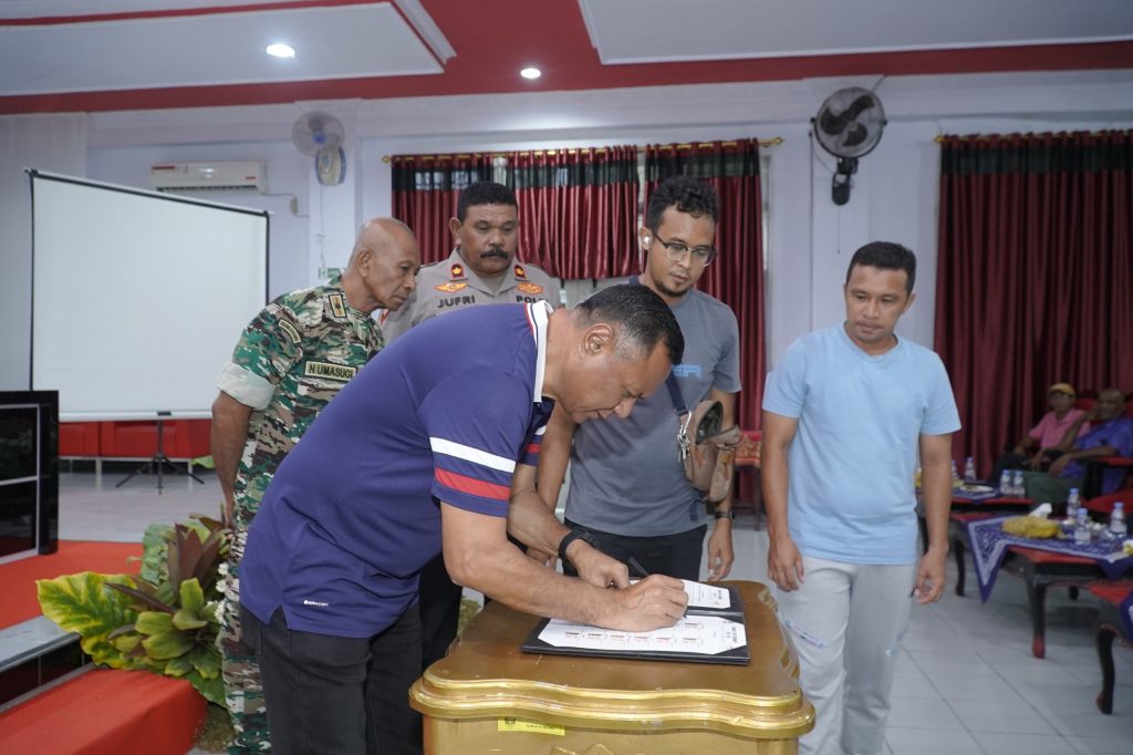 Memasuki babak 16 besar Gurabati Open Turnamen (GOT) Tahun 2025, Wali Kota Tidore Kepulauan Muhammad Sinen pimpin rapat evaluasi bersama Panitia GOT beserta para Manajer, Pelatih dan Koordinator Suporter dari masing-masing tim yang lolos ke putaran kedua kompetisi sistem gugur, rapat tersebut berlangsung di Aula Sultan Nuku Kantor Wali Kota, Jumat (25/4/2025). Mengawali arahannya, orang nomor satu di Kota Tidore Kepulauan ini mengatakan, sebaiknya evaluasi seperti ini tidak hanya kepada manajer dan suporter tim, namun juga perlu dievaluasi panitia dan koordinator wasit, agar masalah-masalah sebelumnya tidak akan terulang lagi pada babak 16 besar, karena sistem gugur tentunya punya resiko yang besar. “Saya sering menonton dan mengamati, masalah suporter kemarin memang sempat membuat Kapolresta Tidore meminta untuk tutup, namun saya sudah komunikasi dengan beliau, ada berbagai pertimbangan termasuk salah satunya perputaran ekonomi yang tumbuh selama GOT ini berlangsung, sehingga beliau masih mau bekerjasama untuk tetap dilanjutkan,” Ungkapnya. Untuk itu, Muhammad Sinen berharap, Panitia GOT dan tim wasit juga bisa belajar dan berkaca dari pertandingan-pertandingan sebelumnya, jangan lagi mengulangi di babak 16 besar, sikap panitia juga harus lebih sabar karena sebagai penyelenggara, begitu juga sikap wasit di lapangan perlu dievaluasi, sementara untuk pengamanan akan tetap dibantu oleh aparat kepolisian. “Sistem seperti ini harus dirubah, mari saling membantu untuk sukseskan turnamen sepak bola di Kota Tidore Kepulauan, agar kedepannya Kota Tidore bisa menjadi penyuplai pemain sepak bola terbaik di Maluku Utara. Saya mengapresiasi panitia dan masyarakat Gurabati, karena turnamen ini memberikan dampak ekonomi yang besar,” Tuturnya. Lebih lanjut, Muhammad Sinen juga meminta kepada panitia untuk dapat bersikap terbuka dan menginformasikan setiap ketentuan yang telah dibuat selama turnamen berlangsung, seperti evaluasi wasit yang telah dilakukan, penting untuk dipublikasikan melalui media sosial, agar tidak terjadi spekulasi dari para pendukung masing-masing tim. Dalam rapat evaluasi tersebut, arahan terkait pengamanan GOT juga disampaikan oleh Wakapolresta Tidore dan Kasdim 1505/Tidore, sementara para manajer tim, pelatih dan koordinator suporter juga diberikan kesempatan untuk dapat menyampaikan saran, masukan maupun pertanyaan yang langsung ditanggapi oleh panitia penyelenggara Gurabati Open Turnamen Tahun 2025. Usai melakukan rapat evaluasi, panitia bersama para manajer dan koordinator suporter menandatangani nota kesepahaman official team peserta GOT ke XXVII round of 16 yang berisi poin-poin komitmen beserta teguran dan sanksi yang telah disepakati bersama, penandatanganan tersebut disaksikan langsung oleh Wali Kota Tidore Kepulauan, Wakapolresta Tidore dan Kasdim 1505/Tidore.